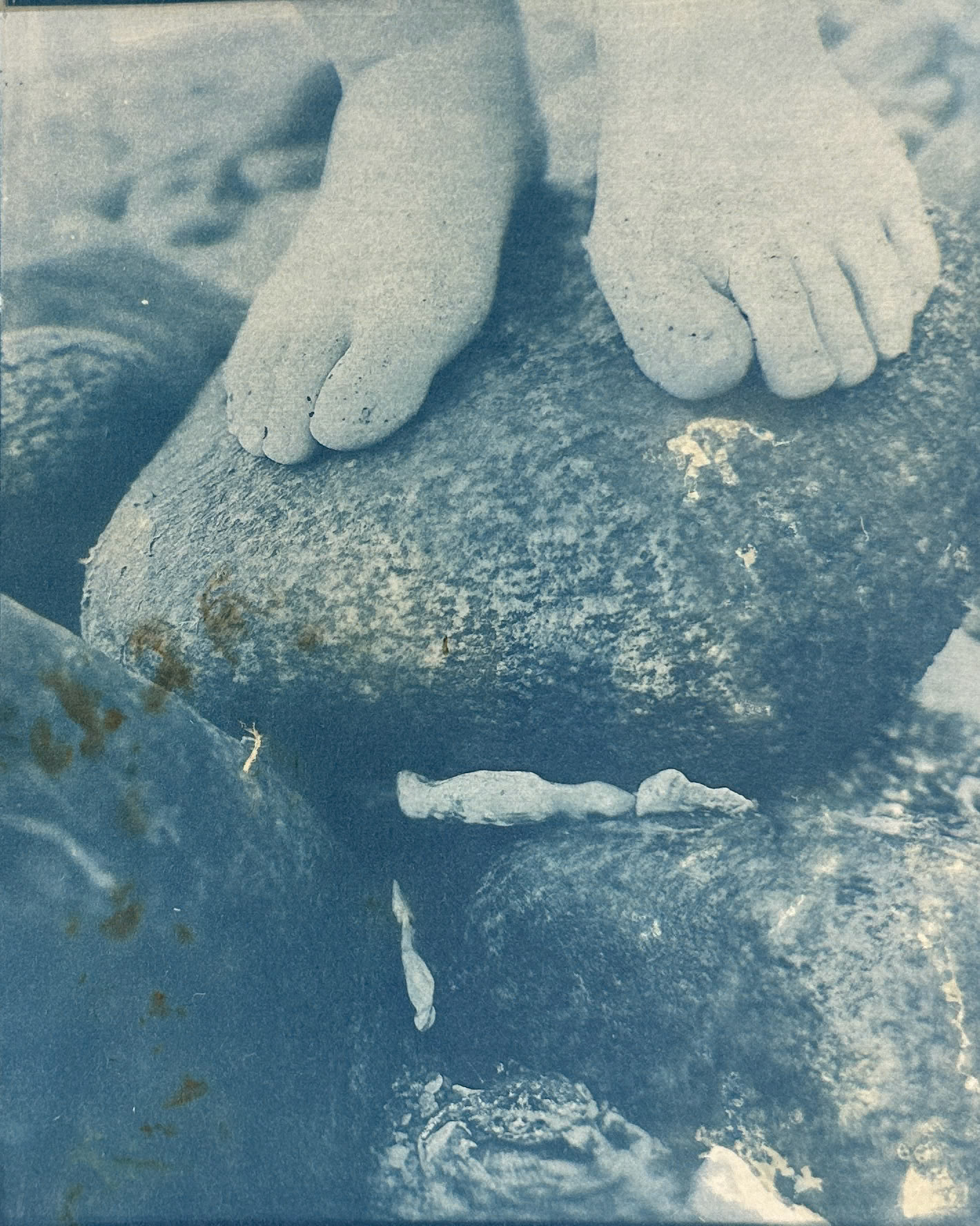 In “Transcending the Blue: Touch, Look, and Wonder,” a photographic journey unfolds in the dance of light and shadow, where childhood meets the boundless expanse of the ocean. Growing up in Rhode Island, with its rugged coastline and deep maritime heritage, profoundly shaped Jen Wilkosz's artistic vision. As both a mother and an artist, she draws inspiration from the innocence and wonder of youth, captivated by the endless possibilities that arise when children engage with the world around them. Inspired by the whispers of past masters like Sir John Herschel and Anna Atkins, as well as contemporary visionaries such as Meghan Riepenhoff and Matthew Brandt, Wilkosz has wholeheartedly embraced the poetic allure of the cyanotype print process. Following in the footsteps of these pioneers, she skillfully harnesses its multifarious range of blues to convey the ephemeral nature of childhood and the ever-shifting tides of the sea. At the heart of her work lies a profound collaboration with the children themselves. Together, they embark on an enchanting voyage of discovery, where the laughter and curiosity of the children infuse vitality into each print, transforming them into co-authors of their own narrative. This participatory approach imbues the pieces with a sense of immediacy and reflects the notion that art is most meaningful when it emerges from lived experience and active engagement. Moreover, incorporating natural elements from the sea in the development and toning process further enriches the narrative power of the pieces, as they become vessels not just for imagery but for the tangible essence of the ocean itself, deepening the connection between the viewer and Jen Wilkosz’s love letter to the childhood oceanic experience.